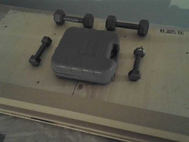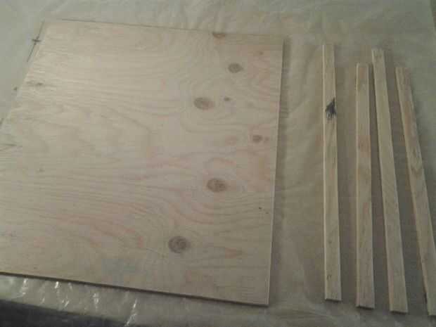 PEGAMENTO las piezas juntos: Para unir el marco, utilice pegamento de carpintero, es sorprendentemente fuerte y el olor es bastante mínimo. Poner algunos pesos o fije las piezas juntos y dejar durante la noche para secarse. Al día siguiente, la arena de cualquier pegamento extra que exudado hacia fuera de las costuras.