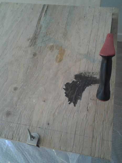 Mida y marque: Después de conseguir una idea aproximada de la zona que iba a poder cubrir con los corchos, marqué la madera contrachapada.