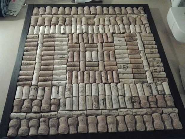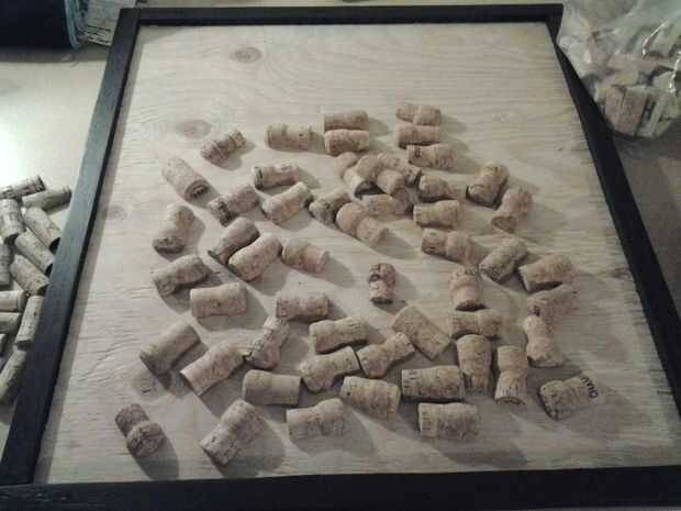 Pongo en todos los corchos en el patrón que yo quería entonces recogió cada corcho uno a la vez y había pegado a la Junta.