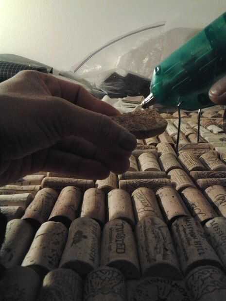Algunas personas comienzan a pegar los corchos a partir del centro y a mano alzada su patrón. Esto es una gran manera de hacerlo pero tienes que tener un montón de corchos más será necesario para que usted pueda cortar Corchos para encajar en huecos pequeños que pueden dejarse abiertas cerca de los bordes. Nada de malo pero tenía un número determinado de corchos y al final, había terminó siendo exactamente lo que necesitaba.
