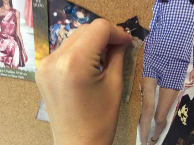 Una vez que tengas tus fotos todo cortado, puede comenzar a colgar con tachuelas. He usado clavos claro para no dibujar lejos de la imagen. Mis fotos eran todos de diferentes formas y tamaños, y traté de no superponerlos. Me quedo sin tachuelas, por lo que existen algunos puntos en blanco que debo llenar.