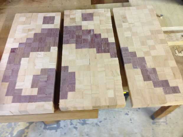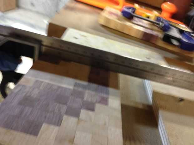 Una vez que los bloques han sido lijadora y nivelado, asumí los en la Sierra de mesa para alinear los bordes.