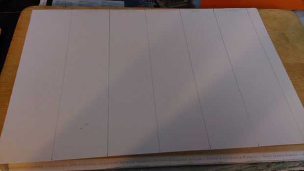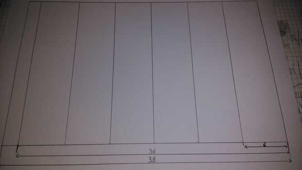 El cartón es de 38cm. Usted necesita dividir los primeros 36cm en 6 trozos de 6 cm. Asegúrese de que tiene 2cm a la izquierda al final.