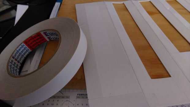 Ahora utilice la cinta de doble cara para pegar el plástico sobre la cartulina.