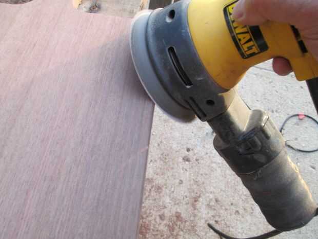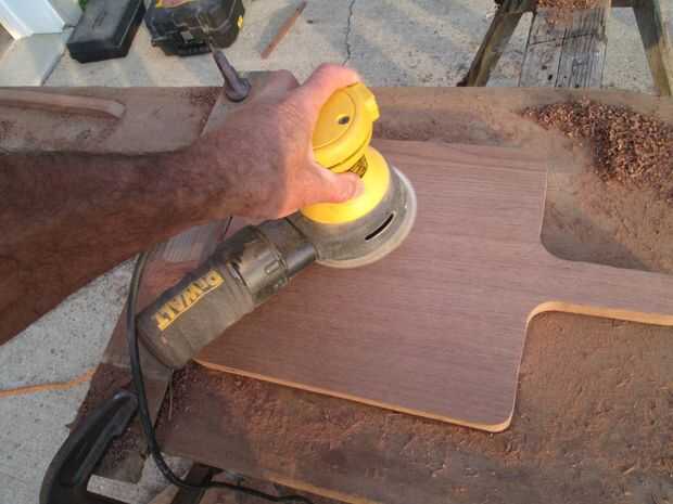 Usé una lijadora orbital con papel grano 80 para ir por toda la superficie de la Junta. Luego puse un pequeño radio en todos los bordes para darle un aspecto más acabado. Una vez que estaba satisfecho con eso, me cambió al papel de grano 120 y volvió sobre el toda la superficie y los bordes.