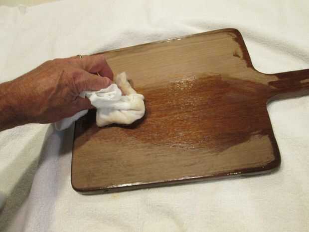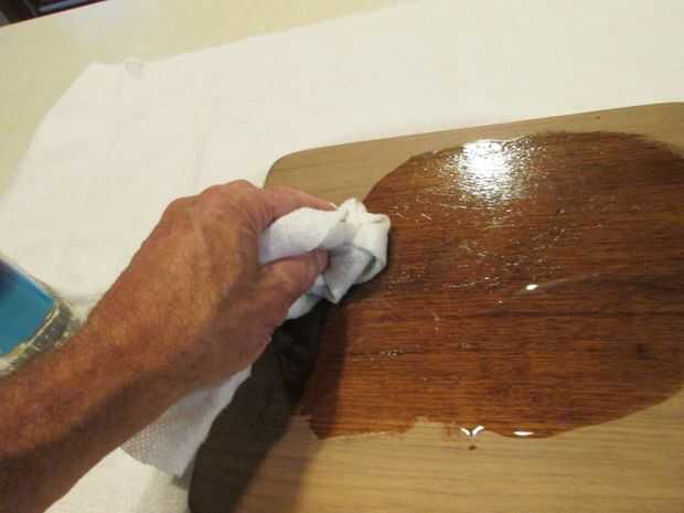 Pongo 3 manos de aceite en este tablero. Era una simple cuestión de verter algunos en el tablero un roce es con un paño suave y limpio. Después de la última capa, me frota con un paño limpio para quitar cualquier exceso. El aceite realmente lo oscureció.
