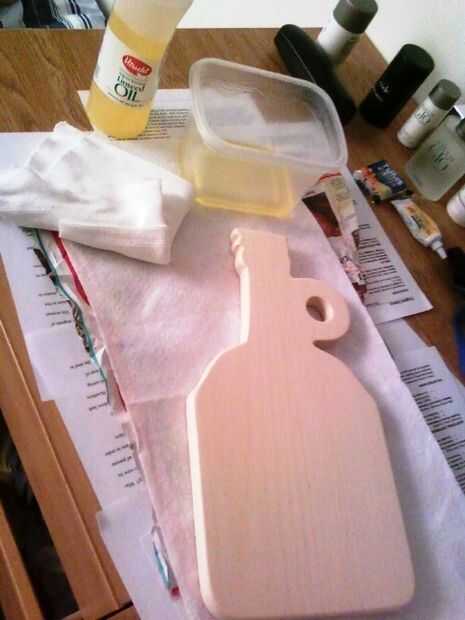 Utiliza un trapo limpio (camiseta vieja) para mojar en el aceite y había aplicado generosamente sobre toda la superficie de la tabla de cortar, poner un buen pocas capas de periódico y papel toallas debajo de él. Como aceite de linaza se toma más tiempo para secar de las opciones disponibles, aplicar el aceite dos días más tarde de la misma manera y entonces permitió a más seco durante cinco días más. (El agujero colgante viene bien aquí)