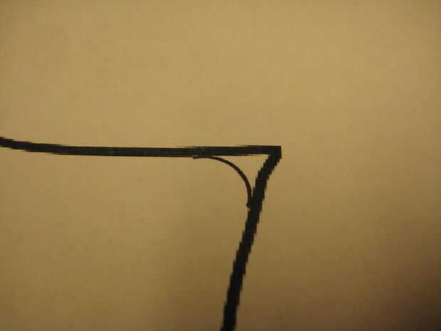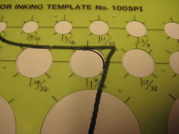 Retirar el interior esquinas del patrón lo más fácil es tomar una plantilla de círculo y moverse alrededor de su patrón. En cada esquina interior conectas ambos bordes de la esquina con un radio usando la plantilla. Sólo tenía un par lugares en mi patrón que necesita ser ajustado. Ver las fotos de lo que éstas parecen.