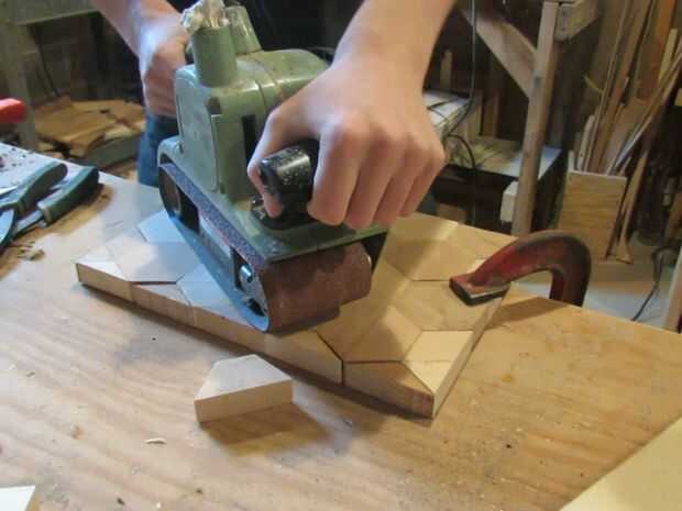 Ahora que los lados eran planos, necesitaba aplanar las caras, que habría sido una brisa por les paso un cepillo. Sólo un problema: no tengo un cepillo. En cambio, arreglado mi lijadora de banda portátil antiguo y lijado para un largo tiempo. Incluso con un cinturón de arena del curso 50, tomó un tiempo para conseguir todas las piezas al mismo nivel. También en este momento me llena muchos de los vacíos de pegamento para madera y lijar sobre ellos hasta que se habían ido. Después de él fue todo hecho y suave y parejo - había hojeado por encima y repite todo otra vez.