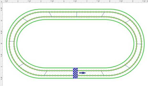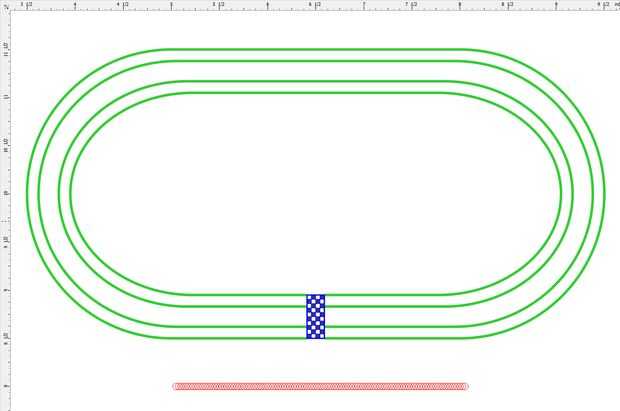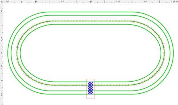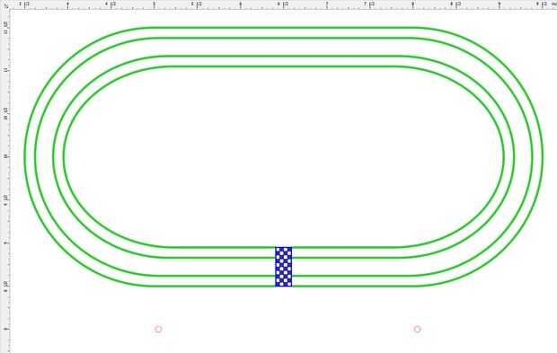 Hay un montón de agujeros en un tablero de cribbage y mientras sea posible utilizar un taladro y una tonelada de paciencia, aquí es donde un cortador láser realmente viene práctico. Dibujar dos agujeros pequeños (diámetro de 0,06") espaciados unas pocas pulgadas aparte. Luego usando la herramienta fusión crear 118 copias intermedias (que la herramienta de mezcla será espacio uniformemente entre los dos círculos originales). A continuación dibujar un 0.3" x0.7" rectángulo alrededor de la línea de meta, que se utilizará como referencia para marcar donde deben iniciar y detener alrededor de la pista los agujeros. Seleccione la fila de círculos y elegir nuevo camino desde el elemento de menú de propiedades de Path y seleccione uno de los óvalos del mediados. Esto aplicará la fila de círculos para el óvalo automáticamente mientras se mantiene una distribución uniforme. Arrastre el círculo primero a la intersección del óvalo y el rectángulo de referencia y lo mismo para el último círculo. Realizar este mismo proceso general para crear los agujeros para el segundo óvalo. Ahora se puede eliminar el rectángulo de referencia. Finalmente, dibuja líneas que conectan cada décimo par de círculos (para ayudar a los jugadores contar su puntuación) y agregar una flecha a la pista para mostrar la dirección que deben seguir.
