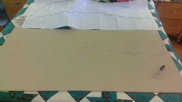 Usando cinta adhesiva, pega la Mo impresa usando la red como un ayudante a todo - PosteRazor da una pequeña cantidad de traslapo que ayuda a este proceso. Colocar el papel sobre el MDF y, poco a poco utilizando un marcador, trace el contorno de Mo. El marcador se purga a través del papel sobre el MDF y dejar un contorno dulce. Mover el contorno del papel a la posición del segundo Mo iría y trace una línea que separaría el Mo No hay que trazar el segundo mes.