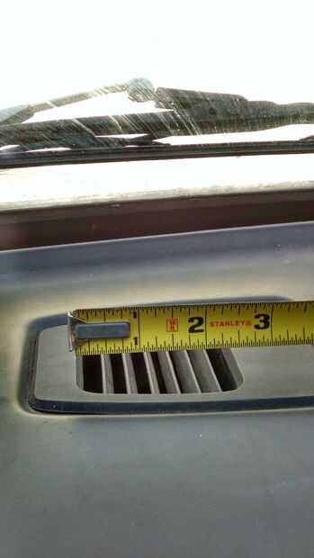 Mina fue de 2-3/8" de ancho para la parte de ventilación real. Pero quería el bloque para cubrir todo de modo que no bloqueen cualquier flujo de aire así que corte mi bloque en un cuadrado de 3".