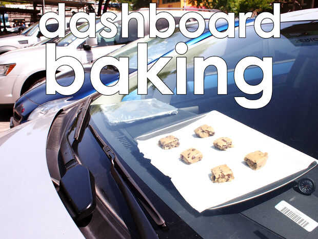 Con el coche de puertas y ventanas cerradas, y el brillante sol de verano, el coche puede actuar como un horno. Durante una tarde particularmente calurosa mientras yo estaba de viaje en Texas pensé que le daría a esta idea un intento. He experimenté con cocina en los coches de antes con el coche-b-que, cocina sabrosa cena en el colector del motor y el silenciador, y ahora con éxito he hecho postres en el salpicadero caliente!