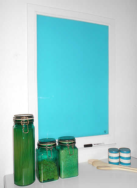 Olvidar sobre pizarras y pizarras desordenados... hacen de este memo o el menú de tablero de cristal y rociar la parte de atrás del vidrio con cualquier color de Rust-Oleum para emparejar el décor existente. Limpieza Limpie el vidrio y escribir otra vez!