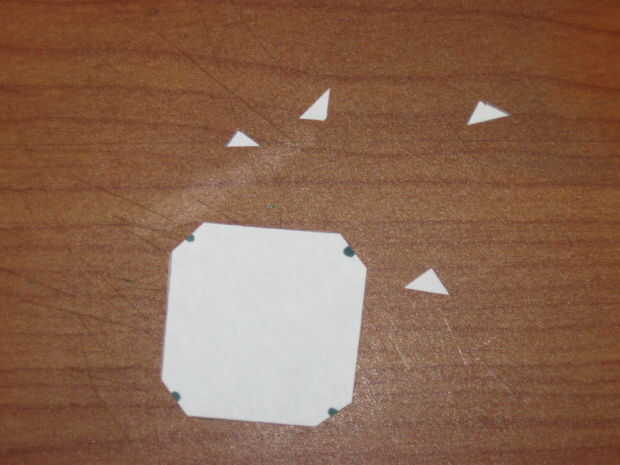Cortar un poco de las esquinas. Esto servirá de plantilla para hacer los agujeros en la cara del botón.