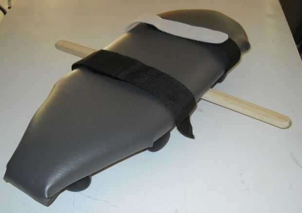 Un tablero de moto se puede personalizar para un niño particular. Éstos vienen en todas formas y tamaños (dependiendo del tamaño del usuario). Algunos tienen estabilizadores de piernas o brazos estabilizadores construidos en. El demostrado aquí tiene una barra antivuelco. Ésta es pequeña, pero así es el usuario.