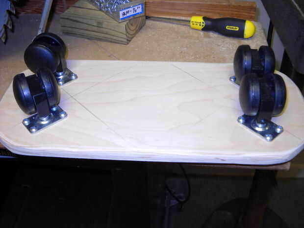 Recoger buenas ruedas para estos proyectos. Cada vez que veo una basura < escritorio, silla, etc. > con los echadores, intento rescatar las ruedas antes de que el resto va a la descarga. También puede comprar las ruedas en línea, en la tienda de hardware, etc.. Estoy experimentando con el uso de las transferencias de bola como ruedas para tableros de scooter.