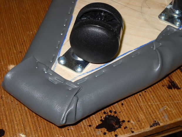 Esta vez, metido a la tela debajo y sujetado con grapa a través de ambas capas. Resulta en un aspecto mucho más limpio. Tire de la tela firmemente antes de grapar el material.