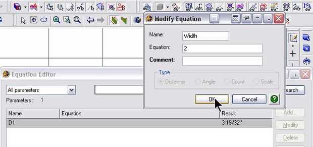 Sugerencia: Es importante que el parámetro actual se destaca al salir la ventana de diálogo del Editor de ecuaciones! Si cualquier otro parámetro se destaca, se sustituirá el valor de ese parámetro como el valor del parámetro actual. Esta es una característica que permite un valor de un parámetro fijado por seleccionar otro parámetro desde el Editor de ecuaciones ventana de diálogo.