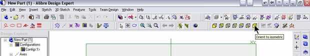 Orientación de la ventana de dibujo para una vista isométrica permite fácil selección de la cara o plano de referencia en el que crear un boceto.