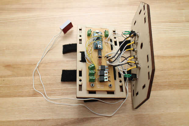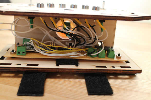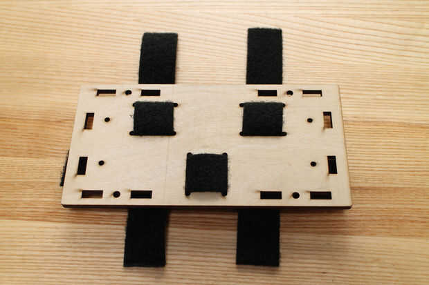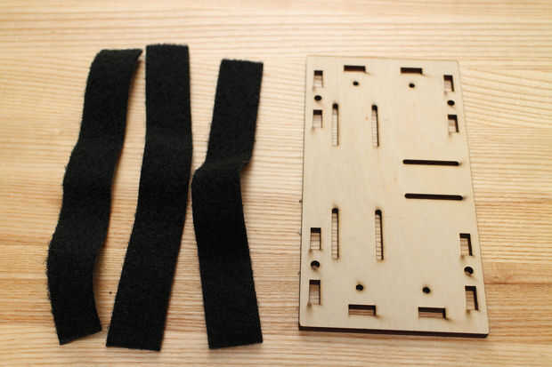 Cortar tres tiras de 8 pulgadas de Velcro y se deslizan por las ranuras de la placa de base rectangular con el lado del "gancho" hacia abajo.