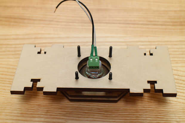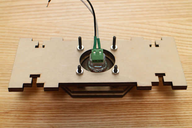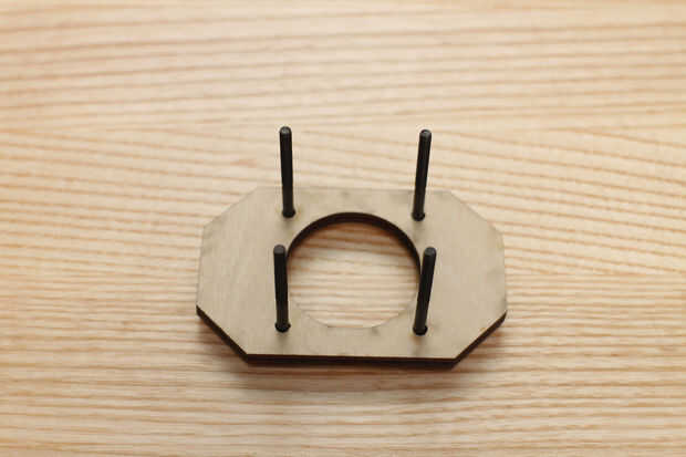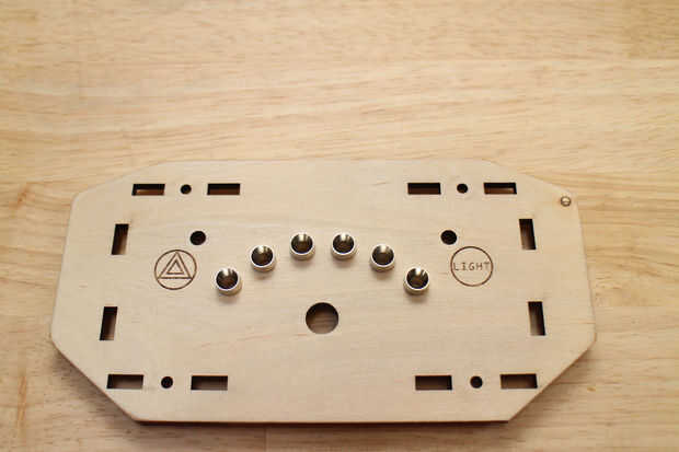 Tomar uno de los platillos octagonales y uno de los tornillos 4-40 largo Coloque en cada uno de los cuatro orificios.