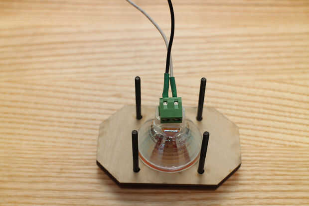 Atornille los cables de la lámpara en la bornera correspondiente (el que está más a la izquierda en este caso).