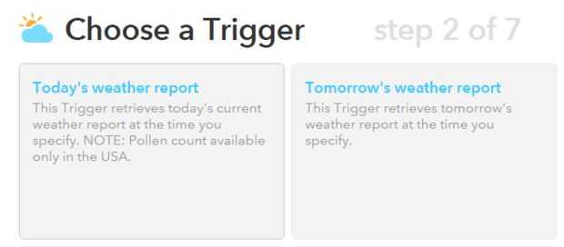 Ahora vamos a crear una receta IFTTT que actualiza de forma automática la temperatura para hoy. Hemos elegido para mostrar la baja y alta para el día.