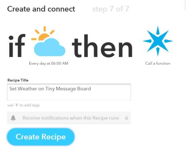 Eso es todo. A 6:00 todos los días, el canal IFTTT empujará el tiempo a su dispositivo.