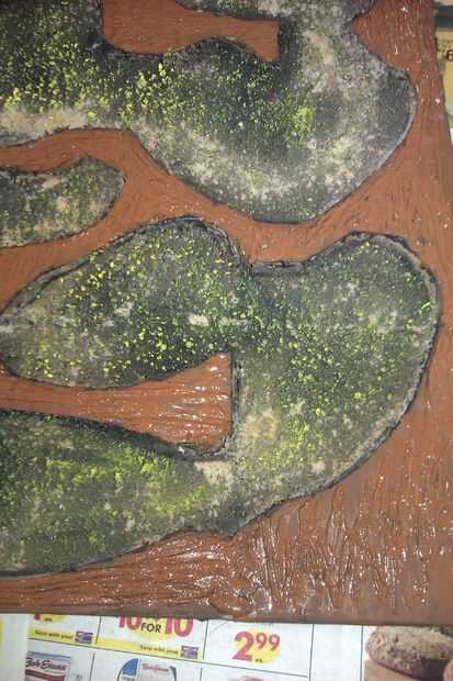 Fui simple en el piso y sólo hizo un seco cepillo amarillo encima de la pintura en aerosol negro. Una vez más se puede utilizar cualquier color que desee. También puede hacerlo como un proceso de dos pasos. Aplicar una capa base y una capa de pincel seco.