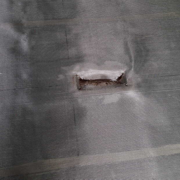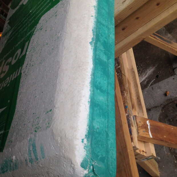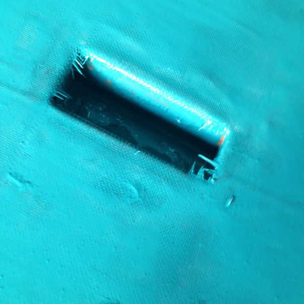 5) para la parte inferior, recortado la fibra de vidrio para que coincida con el ancho de la Junta junto con cierto traslapo en los bordes que ya había sido cristal. tijeras funcionan muy bien para cortar la fibra de vidrio pero asegúrese de que la hoja no ha cambiado de puesto, hacerle corte apaga demasiado.