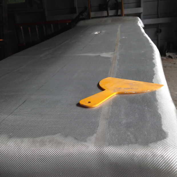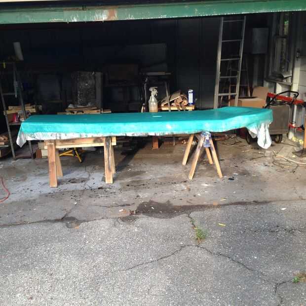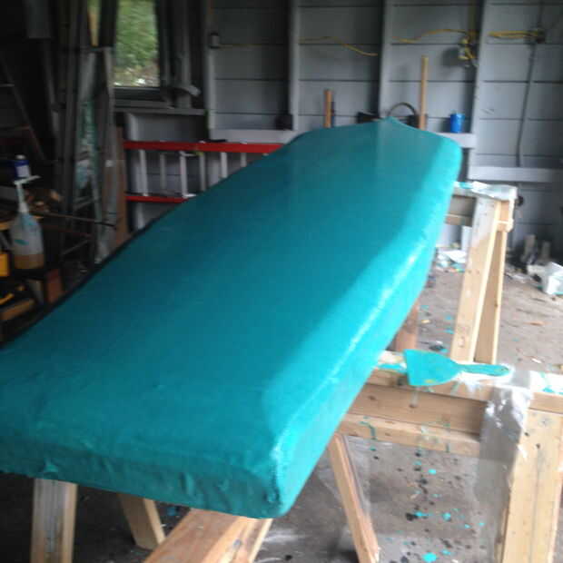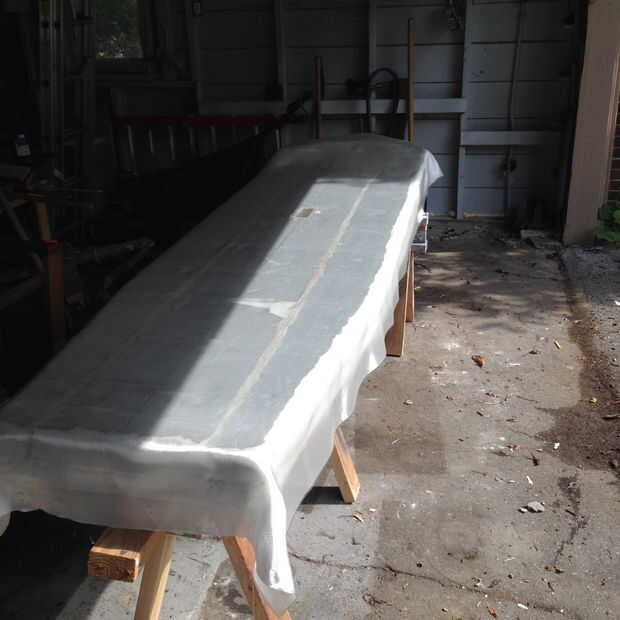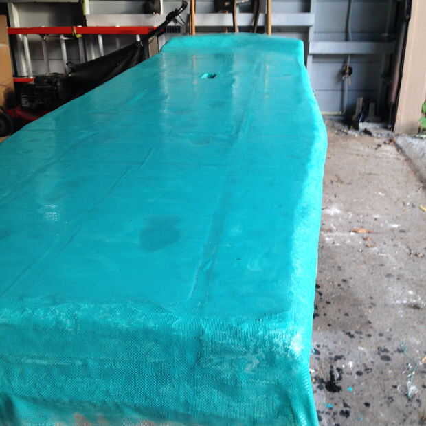 Así que después de hacer una cierta investigación sobre fiberglassing y comprar algunas cosas de composites de Estados Unidos (fui con el endurecedor de 3:1 (olvide la cantidad pero es vendido con la resina), (1gal), la resina de epoxy fibra de vidrio (8 yardas en 38"-otra vez el tipo exacto se me escapa pero el tipo que compré fue indicado en su página web para embarcaciones), pigmento (4 onzas), 2 bombas de dispersión de la resina y el endurecedor. También usé solo tazas, cucharas de plástico, pinceles baratos y un raspador de pintura plástica.