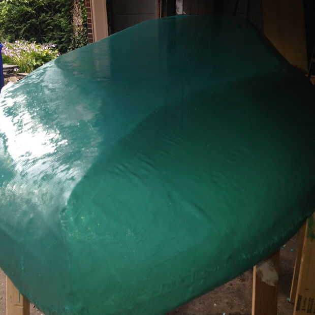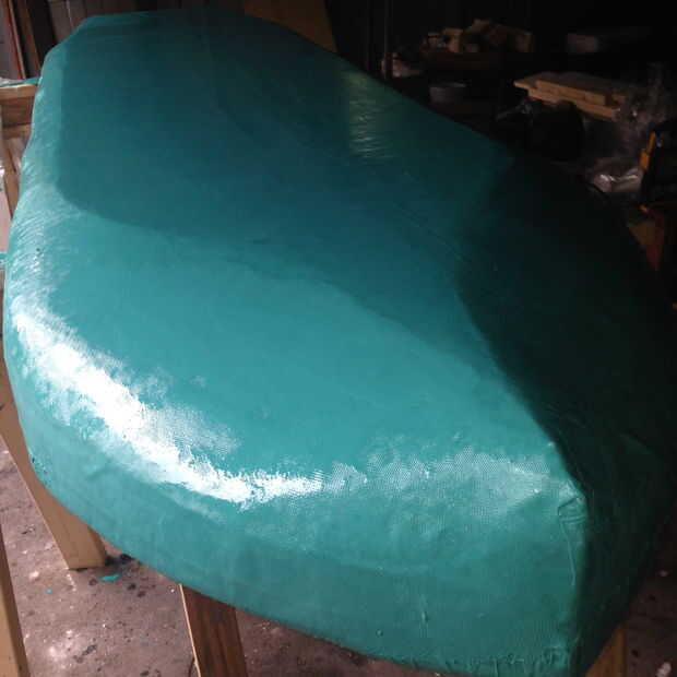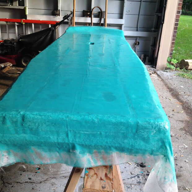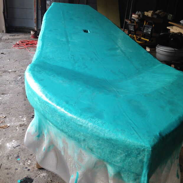 3) después de dejar que la resina se unen a la fibra de vidrio durante 2 horas, puede hacer lo que llaman una 'capa de relleno'. Esto es, esencialmente, sólo una capa adicional para cubrir cualquier punto que te perdiste en la primera ronda. Algunas personas recomiendan el uso de un rodillo de cola para aplicar la resina en esta ronda. El proceso de mezcla es el mismo que el anterior. Una vez que has puesto dos capas en el, deje todo por unos días.