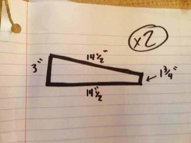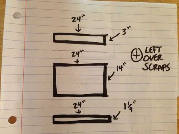 Tendrá restos sobrantes de madera si usted consigue un trozo de tamaño decente, y eso es lo que usted puede tomar casa para hacer las piezas angulares para los lados. Los 2 cuadros a continuación muestra las especificaciones y cortes necesarios para hacer mi tabla, 24 x 14 x 3 hacia abajo inclinada Junta.