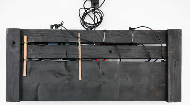 Si iba a hacer esto otra vez reemplazaría la tira de 140mm con tres piezas de 45mm más. Las diferencias entre la madera son útiles para el enhebrado de cables.