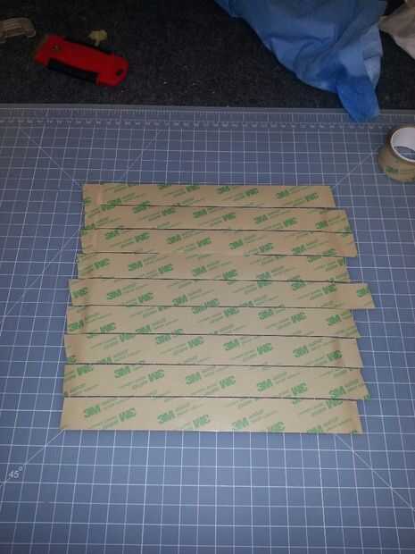 Empecé en un borde del cristal que se establecen la cinta suavemente. Dejó un poco saliente tenía habitación en cualquiera de los extremos de la cinta para poner mis dedos, así no tengo que luchar limpiamente a subirse la cinta. Quiere dejar un pequeño espacio entre cada trozo de cinta, como un milímetro o dos. Si se superpone la cinta puede llevar a agrupar bajo el PEI, que no es bueno para una superficie lisa para sus impresiones. Como pone abajo de la cinta, hacer todo lo posible para mantener las arrugas a un mínimo. Usted querrá dejar el papel de la película por un lado de la cinta en hasta llegar listo a la PEI.