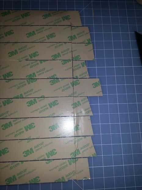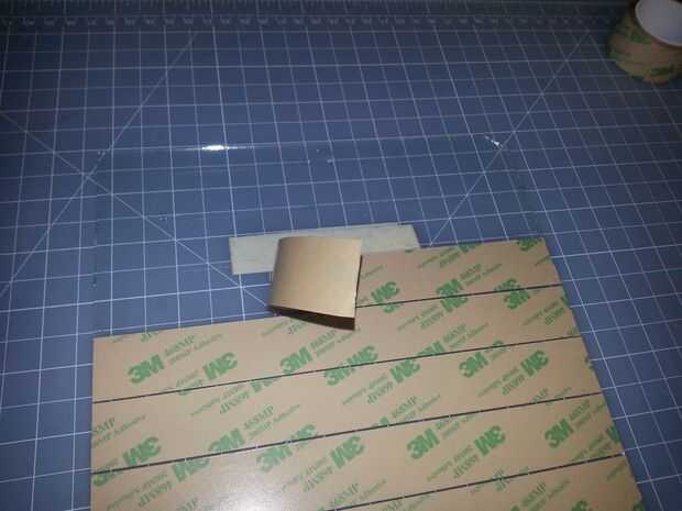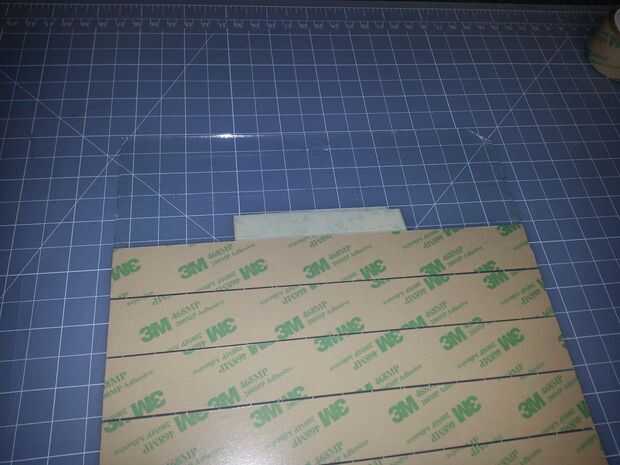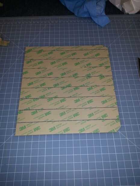 Después de recibir el exceso cortar todo el camino alrededor, Pele la capa protectora de la cinta. Es muy importante que quitar esta capa inmediatamente antes de la PEI que se establecen. Así que si tienes que salir corriendo a cualquier cosa, dejar la cinta protectora en! Todo se pega a este material, incluyendo pero no limitado a, su cabello (muy malo para usted), polvo, pelo de las mascotas, poco dedos de niño, etc... Así que seguir quitando la cinta que cubre con paso 3 cuanto antes! Si algo entra en la cinta, a veces puede simplemente raspar ese pedazo de cinta con una cuchilla de afeitar, si básicamente no viene limpia se tiene que desechar todo y empezar de nuevo. Hablo de valor un par de percances de experiencia.
