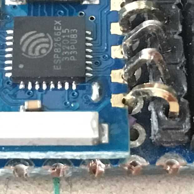 ESP-03 tiene un pequeño puente cerca de Vcc pin, este es el puente para conectar patillas GPIO16 y reset. Para facilitar la función de reset para la placa de pruebas, es necesaria para este puente a corto. Simplemente soldadura que este puente puede hacerlo.