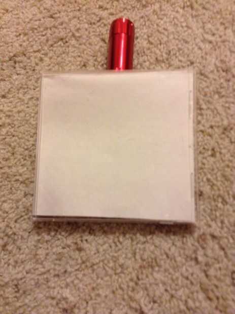 Después de hecho esto, corte un pedazo de papel para sustituir la cubierta de álbum de CD. Esto hará que la luz de la linterna atractiva.