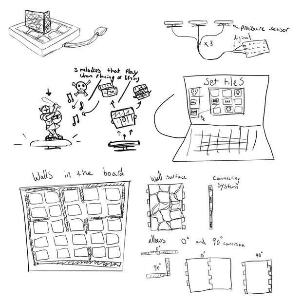 Después ampliando mi alcance pensé que sería divertido jugar con el tablero de juego. Como con las paredes que encajen entre las ranuras de los cuadrados y los azulejos que activó algo en contacto. De esta manera el amo del calabozo sería capaz de programar algunos azulejos con un efecto, como una trampa, tesoro o trampa-tesoro. Después de presentar mi tono inicial, he recibido algunos comentarios muy útiles. Mucha fue la charla técnica acerca de cómo realizar mi minis del light-up, que no entiendo (mi comprensión de la electrónica y la física es bastante limitada), pero alguien me indicó que la parte más interesante de mi idea fue la parte donde el amo de la mazmorra podría programar azulejos efecto secreto en los jugadores. Esto era algo que sólo había deslizado en el último momento, pero me intrigó. Tal vez tenía razón. Probablemente fue la interacción más interesante de mi concepto, así que decidí centrar en eso.