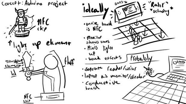 Mi objetivo inicial fue las miniaturas. Minis son geniales, todo el mundo sabe, pero pensé que había mucho potencial que no estaba siendo aprovechado. Antes de conocer mis limitaciones comencé a lluvia de ideas acerca de cómo iba a hacer minis más interesante. Vine para arriba con ideas para minis con funciones de NFC, que podrían salvar su D & D datos del carácter y mostrar en un monitor de fácil cálculo y tal.