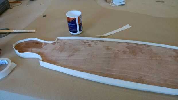 esta es una tabla de madera caseros que hice de madera contrachapada de pino de 3/8 de pulgada. Lijar en los bordes para obtener una ventaja agradable. Lo doblado. Luego pintó y utiliza un poliuretano para sellar e impermeabilizar la madera. Funciona