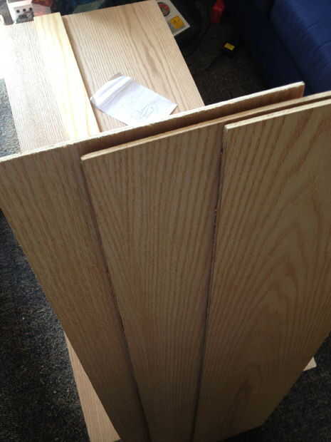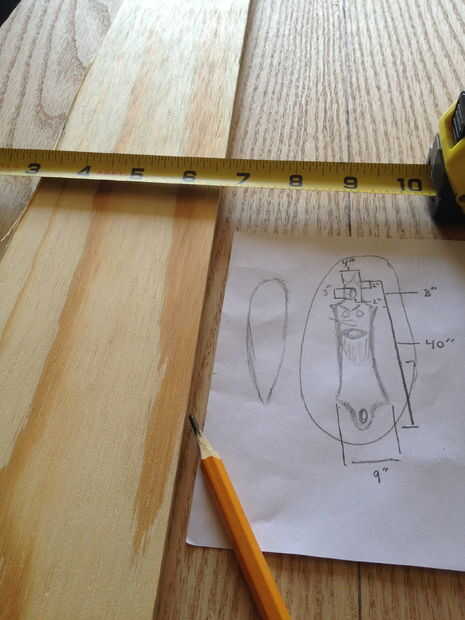 esta es una tabla de madera caseros que hice de madera contrachapada de pino de 3/8 de pulgada. Lijar en los bordes para obtener una ventaja agradable. Lo doblado. Luego pintó y utiliza un poliuretano para sellar e impermeabilizar la madera. Funciona