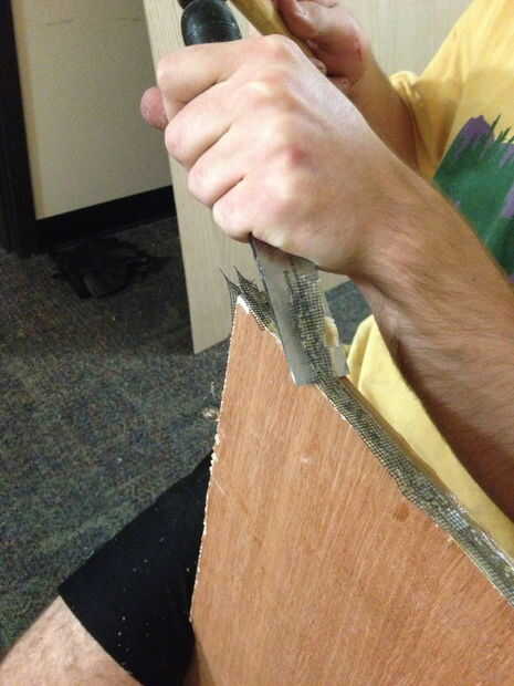 esta es una tabla de madera caseros que hice de madera contrachapada de pino de 3/8 de pulgada. Lijar en los bordes para obtener una ventaja agradable. Lo doblado. Luego pintó y utiliza un poliuretano para sellar e impermeabilizar la madera. Funciona