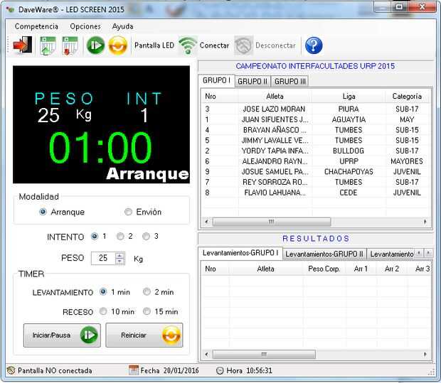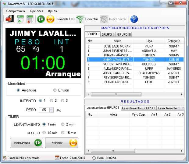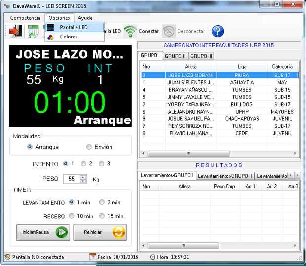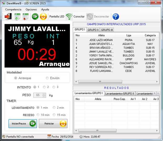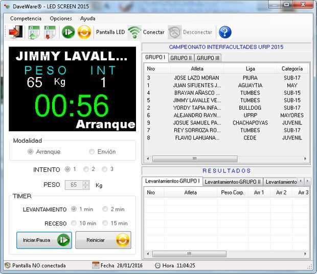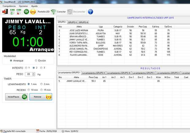 7. Ahora, usted puede seleccionar a cualquier atleta en lista en la lista anterior, y podrás ver sus datos en la placa de LED con sólo un clic.