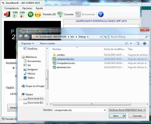 6. Abierto de la aplicación, el archivo de la competencia (incluido dentro de la carpeta) en excel llamado campeonato.xls