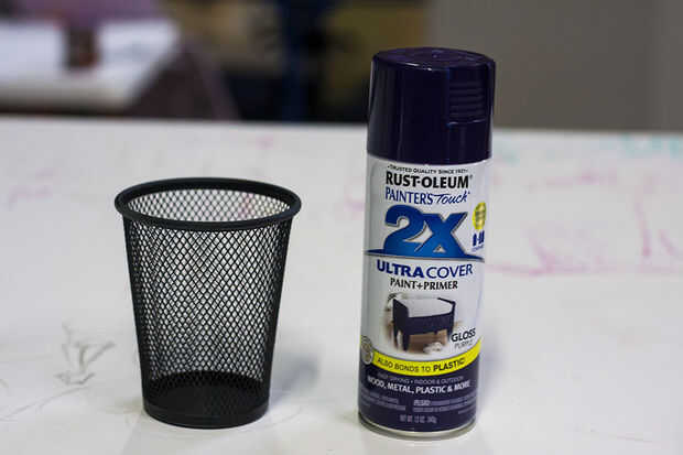 En la foto son los utilizados una galletas que compré en la tienda para $1, un soporte de malla de blanco y púrpura pintura en aerosol. Si usted compra una hoja de cookie usada, asegúrese de que es magnético antes de que usted compra! Si usted compra una nueva hoja de cookie, buscar uno que es de acero inoxidable (o de otra sustancia magnética) y no de aluminio.
