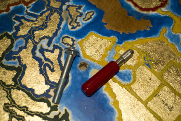 Para dar cabida a la tapa cuadrada del perno de carruaje. Yo uso un cuchillo X-acto de #6 para cortar las muescas.  Ahora la parte superior del perno quede al ras con la parte superior del tablero.