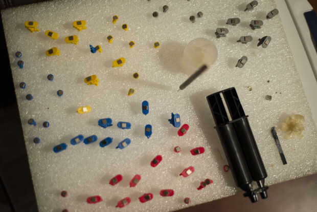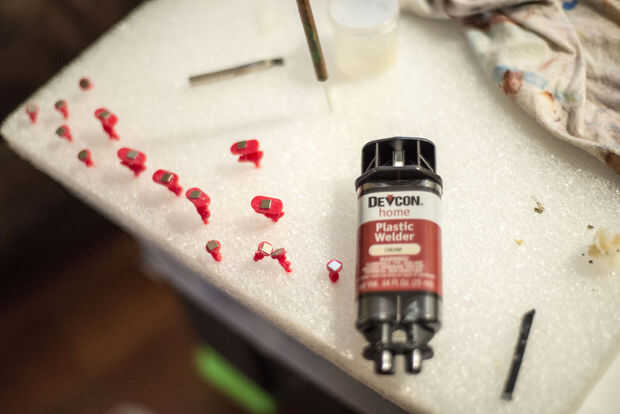 Epoxi se utiliza para pegar los imanes pequeño hobby para las piezas del juego de la infantería y caballería. No creo que sea necesario ponerlos en cañones como los son generalmente muy estables.