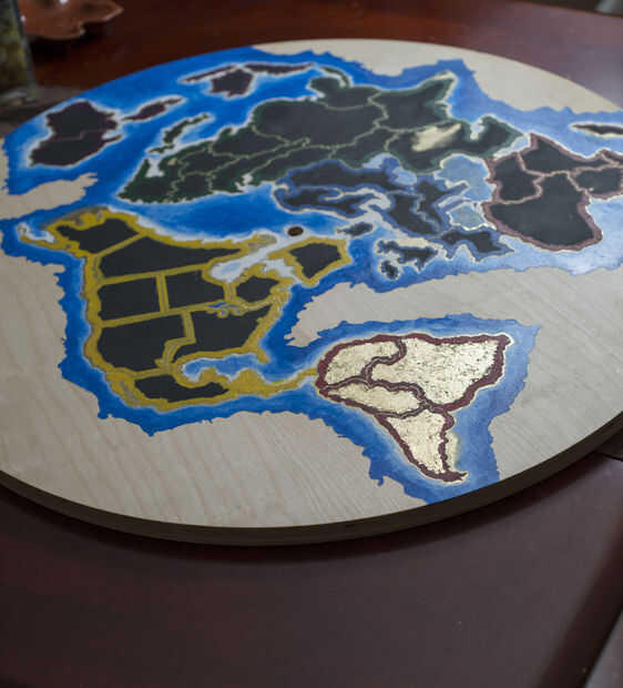 El color que estoy utilizando principalmente en los océanos es de color azul cerúleo. Trato de crear profundidad y contraste por zonas de Mezcladoras de aguas profundas y poco profundas a través de tonos de este color solo con mayoría blanca que rodea las costas.